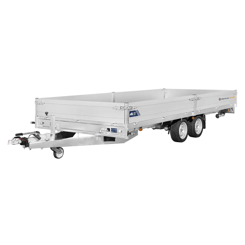 O chassis totalmente galvanizado oferece uma proteção eficaz contra a corrosão, garantindo uma longa vida útil para o seu reboque, mesmo nas condições mais difíceis. As laterais em alumínio com parede dupla com 35 cm de altura, equipadas com fecho exterior, permitem o carregamento fácil e seguro da sua carga.