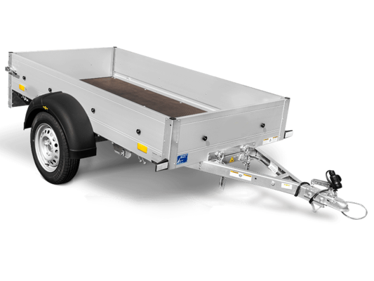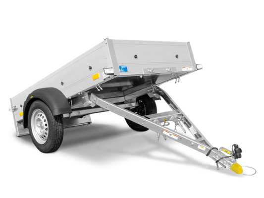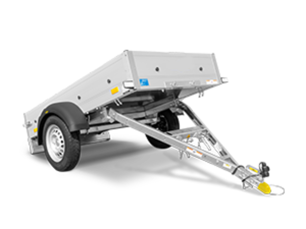 O Startrailer DK não se destaca apenas pelas laterais em perfil de alumínio anodizado com parede dupla, pela robusta parede frontal e pelos robustos fechos do convés. Possui também uma barra de tração dobrável e pode ser armazenado na vertical para poupar espaço na garagem ou debaixo de uma garagem coberta. Além disso, está pronto a utilizar em pouco tempo, auxiliando em todas as suas tarefas de transporte. O reboque está equipado com anéis de amarração integrados nos painéis laterais e botões de fixação pré-montados para a fixação de uma lona. As estacas de canto oferecem opções adicionais de fixação. O reboque pode ser equipado com extensões de painéis laterais, uma cobertura em alumínio e madeira, uma estrutura em H ou, opcionalmente, lona e barras de proteção. Com o seu equipamento de série ou o acessório certo da gama Humbaur, o Startrailer DK está à altura de praticamente qualquer tarefa.